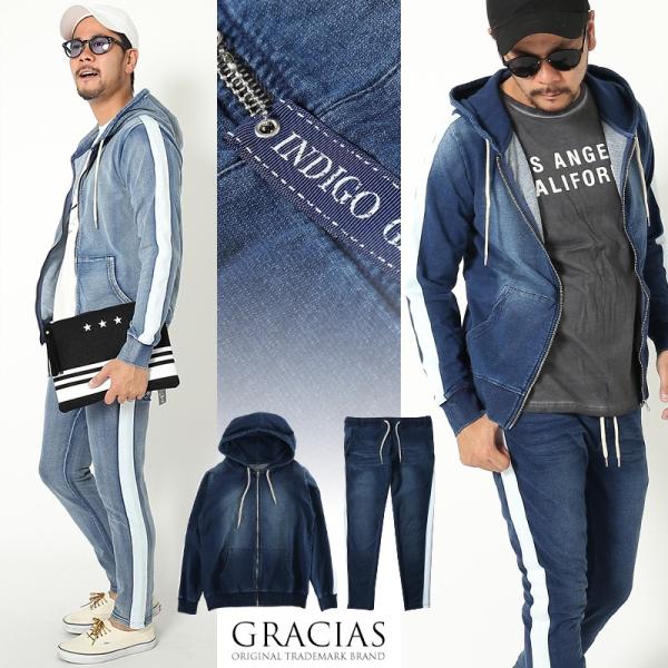 セットアップ メンズ ジャージ デニム スウェット おしゃれジャージ 大人カジュアル ストリート